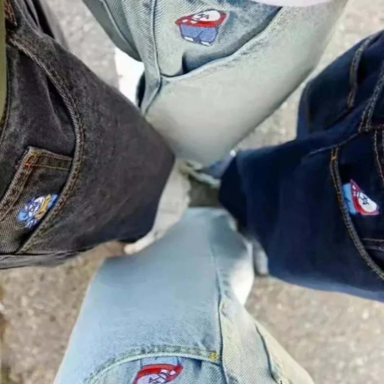 Home > Big boy fashion hip-hop cartoon embroidery retro multiple loose jeans-2478